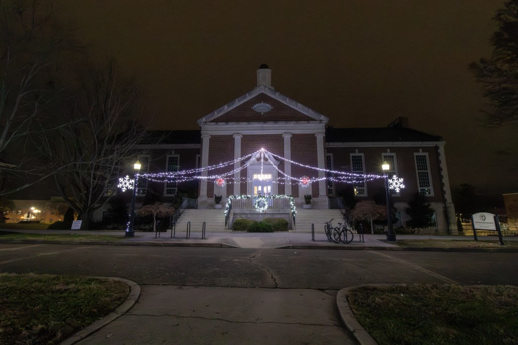 Head to the heart of campus for the best views during Tree Glow. The main quad near the Derryberry Hall offers wide shots of multiple lit trees against old brick buildings. Walk the paths by the library for close-ups that frame the glow with stone steps.