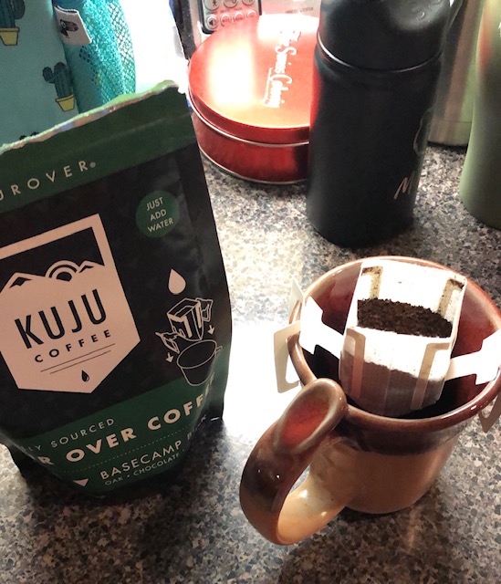 So I saw a video the other day on YouTube from Fun on Vancouver Island and he was showing the use of these really cool coffee filters. So I found them on Amazon and put them in the shopping cart. Fast forward a few days Chloe and I were at Academy Sports and found this. Kuju coffee (base camp flavor). You get five to a pack for 7.69 yeah a little pricey but the idea behind it being all ready to go is ideal. Just toss one or how ever many you need for your trip in a zip lock and into your food bag and your off on your adventure. The flavor is a combo of Oak, Chocolate and Honey is just right. They do have other blends and you can check them out at http://www.kujucoffee.com. Here is another note on this coffee 1% of all purchases goes to the National Park Foundation.